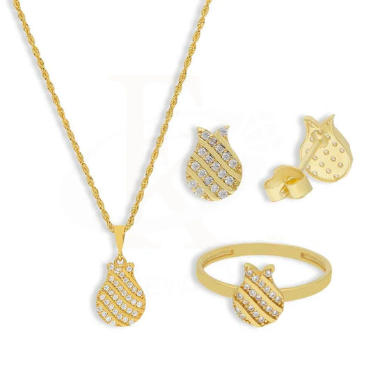 Gold Zircon Pendant Set (Necklace, Earrings and Ring) 18KT - FKJNKLST1759