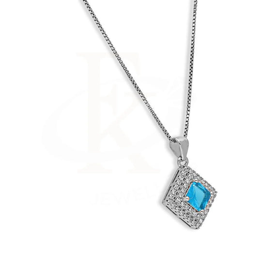 Sterling Silver 925 Blue Solitaire Necklace (Chain with Pendant) - FKJNKLSL2298