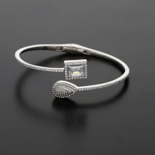 Sterling Silver 925 Cubic Zirconia Decor Bangle - FKJBNGSL7922