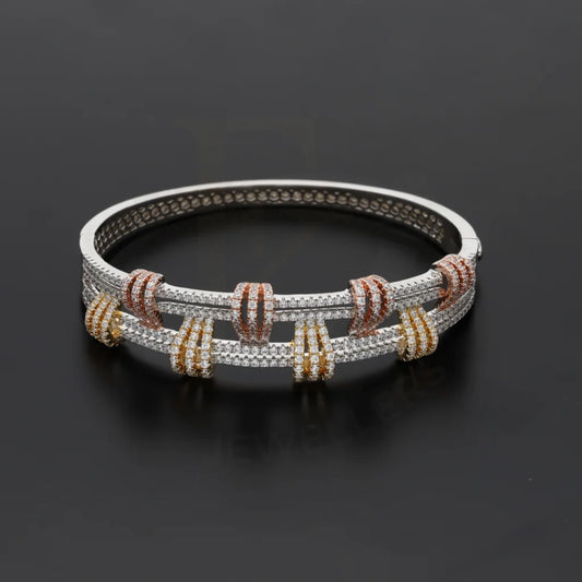 Sterling Silver 925 Tri Colored Pave Bangle - FKJBNGSL7917