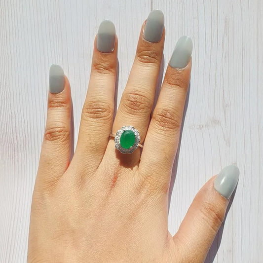 Sterling Silver 925 Green Oval Shaped Solitaire Ring - FKJRNSL3518