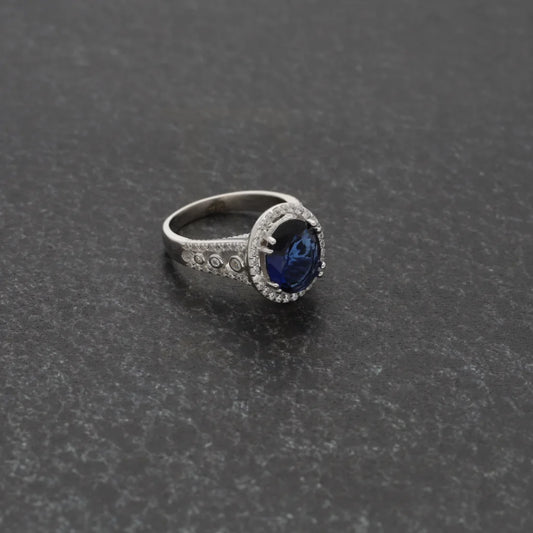 Sterling Silver 925 Faceted Dark Blue Topaz Women's Solitaire Ring - FKJRNSL8297