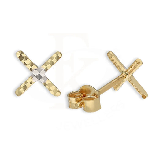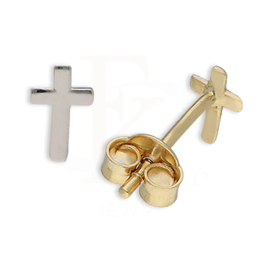 Dual Tone Gold Cross Stud Earrings 18KT - FKJERN18K5547