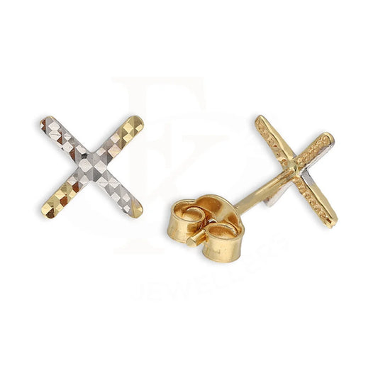 Dual Tone Gold X Stud Earrings 18KT - FKJERN18K5551