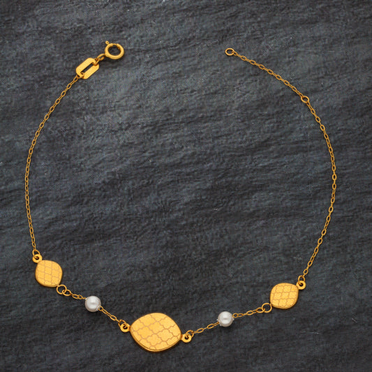 Gold Beaded Oval Shaped Bracelet 21KT - FKJBRL21KM9856