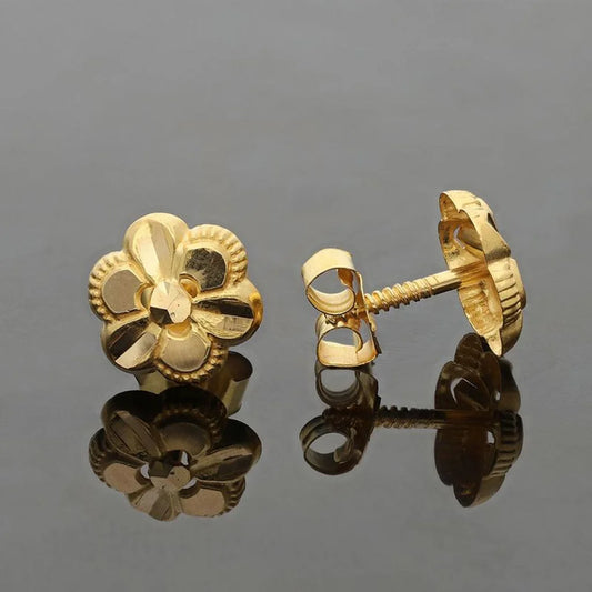 Gold Flower Shaped Stud Earrings 18KT - FKJERN18K5118
