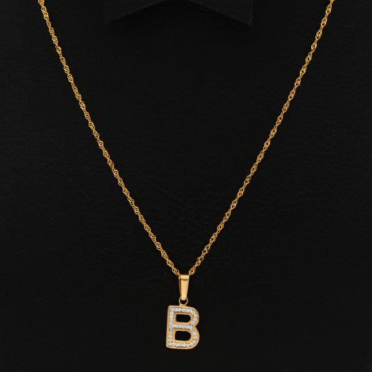Gold Necklace (Chain with B Shaped Alphabet Letter Pendant) 18KT - FKJNKL18K9408