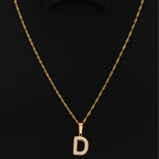Gold Necklace (Chain with D Shaped Alphabet Letter Pendant) 18KT - FKJNKL18K9410