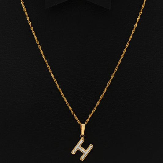 Gold Necklace (Chain with H Shaped Alphabet Letter Pendant) 18KT - FKJNKL18K9413