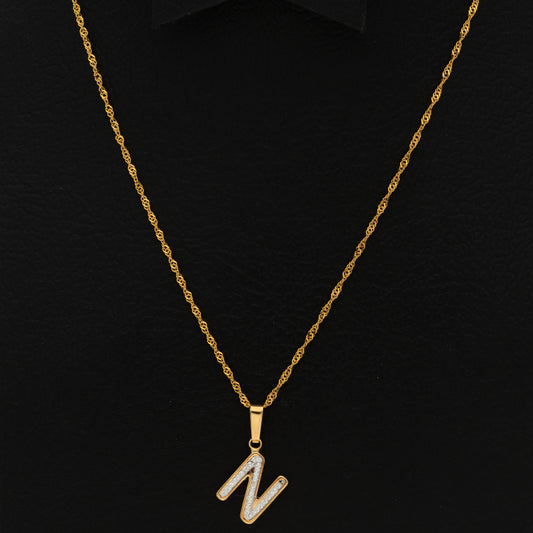 Gold Necklace (Chain with N Shaped Alphabet Letter Pendant) 18KT - FKJNKL18K9419