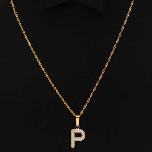Gold Necklace (Chain with P Shaped Alphabet Letter Pendant) 18KT - FKJNKL18K9420