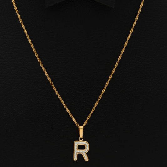Gold Necklace (Chain with R Shaped Alphabet Letter Pendant) 18KT - FKJNKL18K9421
