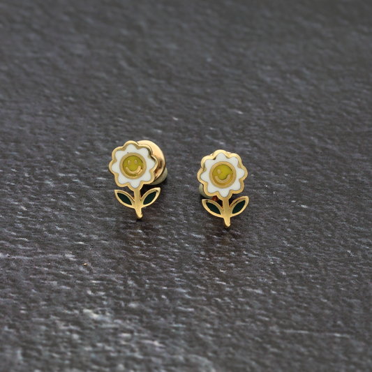 Gold Smile Sunflower Earrings 18KT - FKJERN18K9376