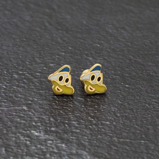 Gold Cartoon Donaldduck Earrings 18KT - FKJERN18K9374