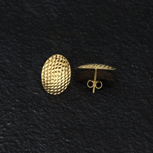 Gold Hammered Teardop Stud Earrings 18KT - FKJERN18K8923