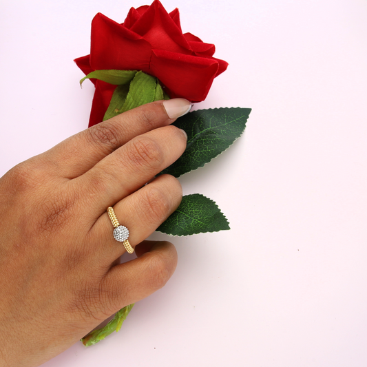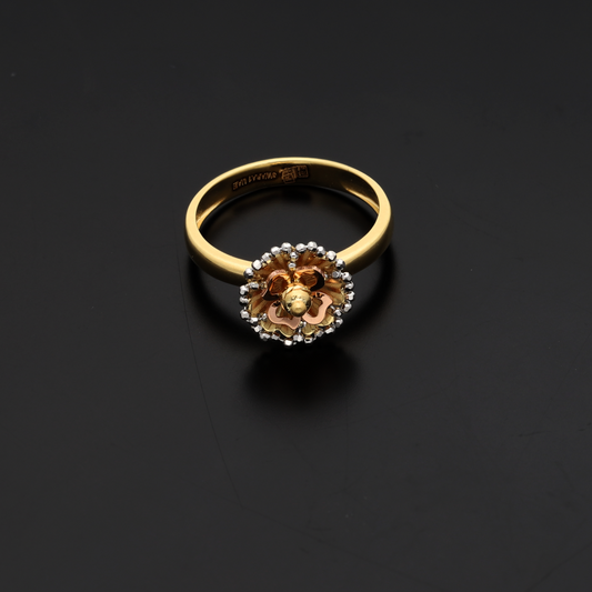 Gold Stud Round Flower Shaped Ring 18KT - FKJRN18K9225
