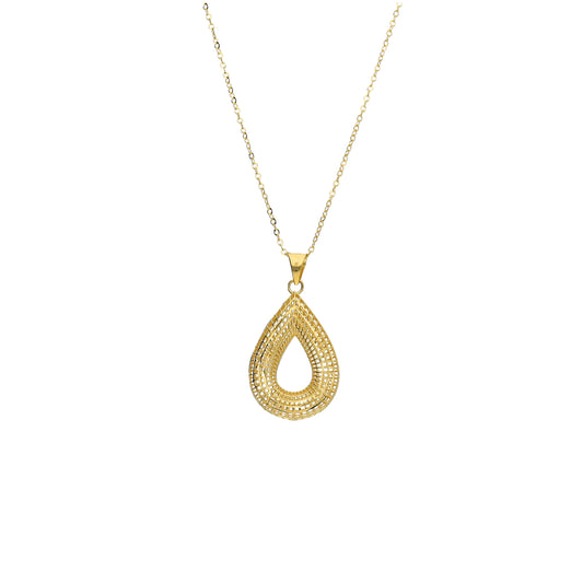 Gold Textured Oval Charm Necklace 21KT - FKJNKL21KM11285