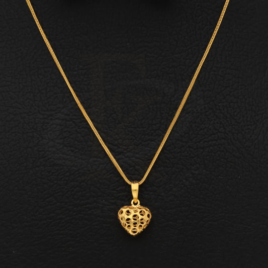 Gold Necklace (Chain with Hollow Heart Shaped Pendant) 21KT - FKJNKL21KM8538