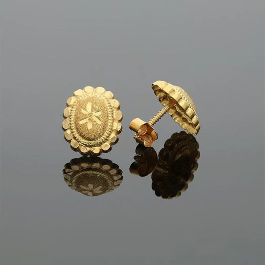 Gold Round Shaped Stud Earrings 18KT - FKJERN18K2783