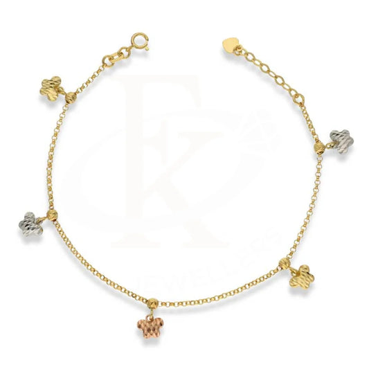 Tri Color Gold Hanging Flowers Bracelet 18KT - FKJBRL18K2975