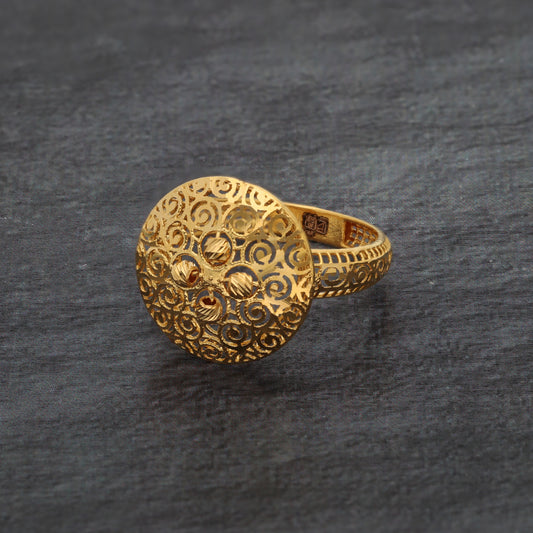 Gold Round Spiral Design Ring 21KT - FKJRN21KM9677