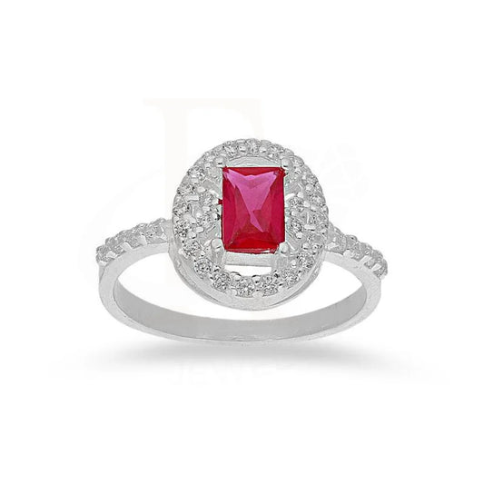 Sterling Silver 925 Round Shaped Red Solitaire Ring - FKJRNSL2134