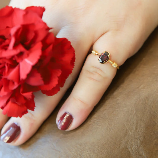 Gold Classic Oval Garnet Birthstone Ring 21KT - FKJRN21KM8115