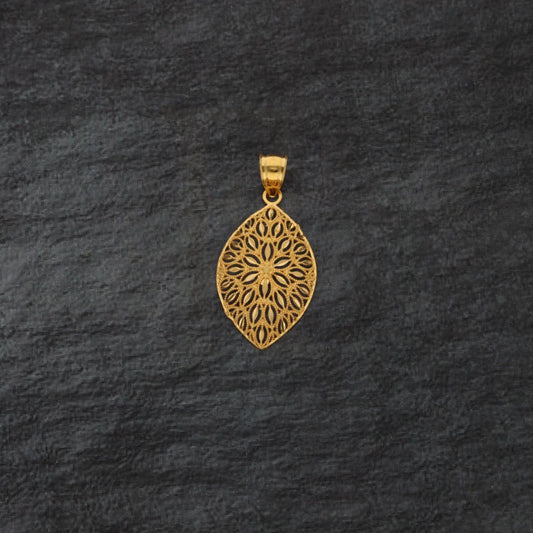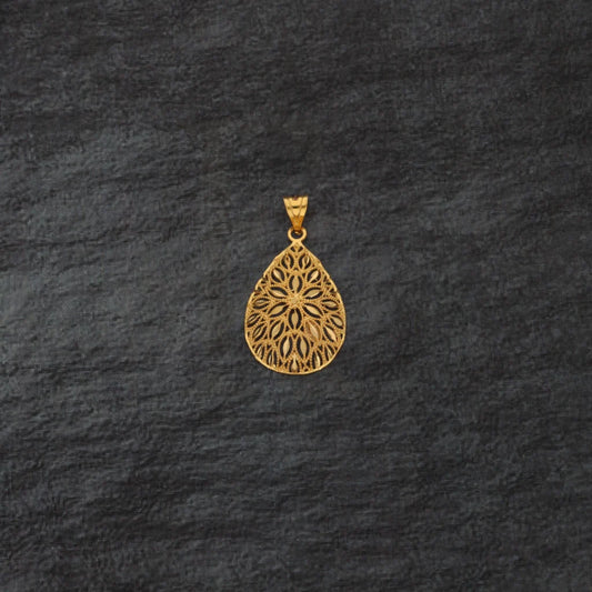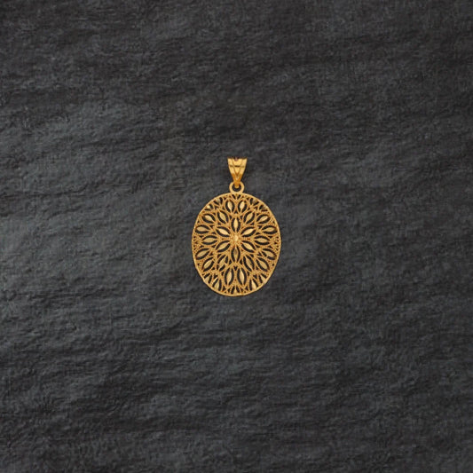 Gold Oval Flower Design Pendant 21KT - FKJPND21KM8374