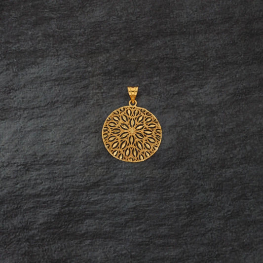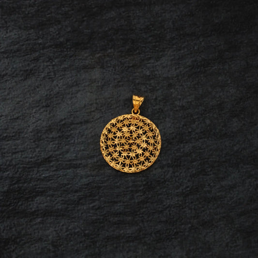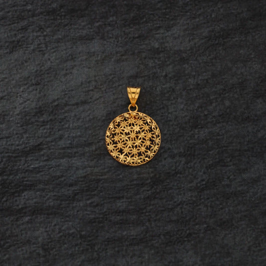 Gold Flower Round Pendant 21KT - FKJPND21KM8378