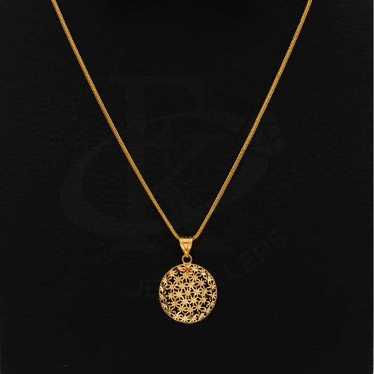 Gold Necklace (Chain with Flower Round Pendant) 21KT - FKJNKL21KM8378