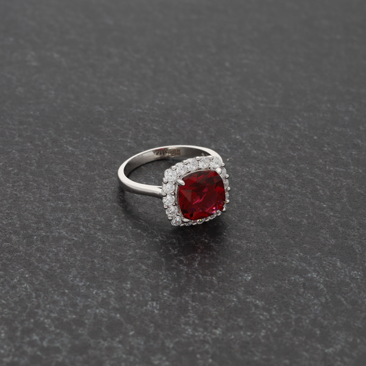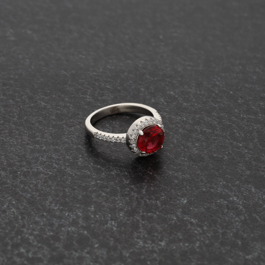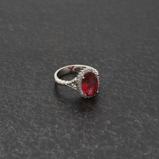 Sterling Silver 925 Men's Solitaire Red Zircon Stone Ring - FKJRNSL8246
