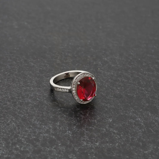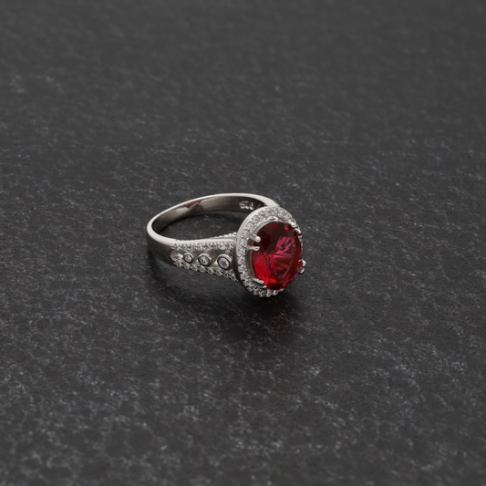 Sterling Silver 925 Men's Solitaire Red Zircon Stone Ring - FKJRNSL8241