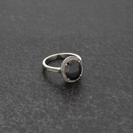 Sterling Silver 925 Faceted Black Topaz Women's Solitaire Ring - FKJRNSL8288