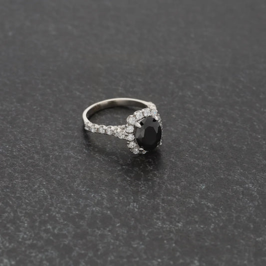 Sterling Silver 925 Faceted Black Topaz Women's Solitaire Ring - FKJRNSL8291