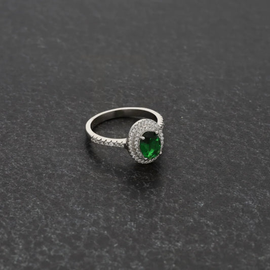 Sterling Silver 925 Men's Solitaire Green Zircon Stone Ring - FKJRNSL8244