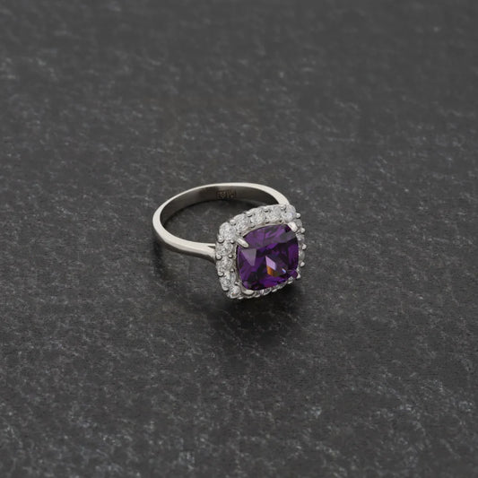 Sterling Silver 925 Faceted Purple Topaz Women's Solitaire Ring - FKJRNSL8262