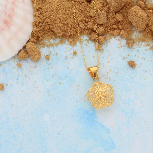Gold Necklace (Chain With Striking Floral Mesh Pendant) 21KT - FKJNKL21KM7939