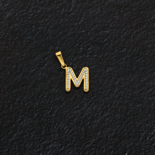 Gold M Shaped Alphabet Letter Pendant 18KT - FKJPND18K9418