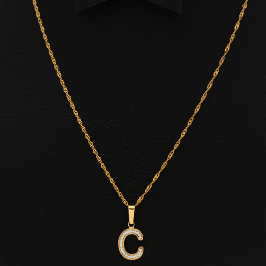 Gold Necklace (Chain with C Shaped Alphabet Letter Pendant) 18KT - FKJNKL18K9409