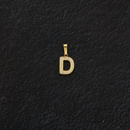 Gold D Shaped Alphabet Letter Pendant 18KT - FKJPND18K9410