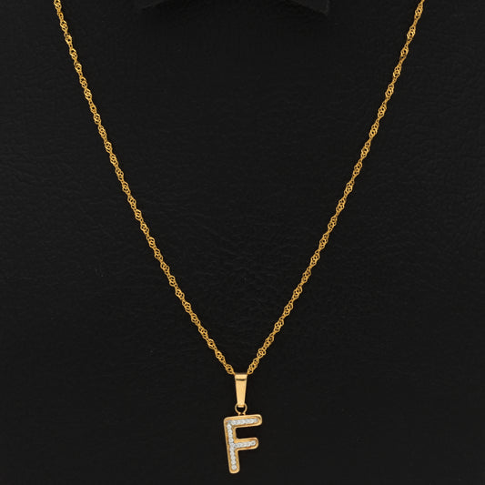 Gold Necklace (Chain with F Shaped Alphabet Letter Pendant) 18KT - FKJNKL18K9412
