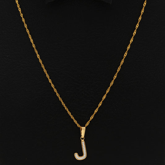 Gold Necklace (Chain with J Shaped Alphabet Letter Pendant) 18KT - FKJNKL18K9416