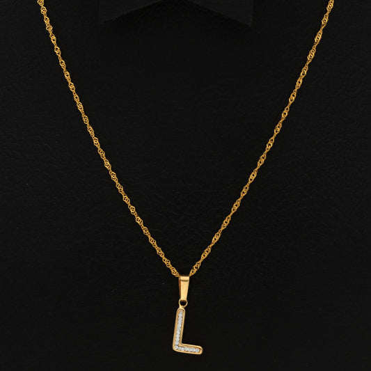 Gold Necklace (Chain with L Shaped Alphabet Letter Pendant) 18KT - FKJNKL18K9417