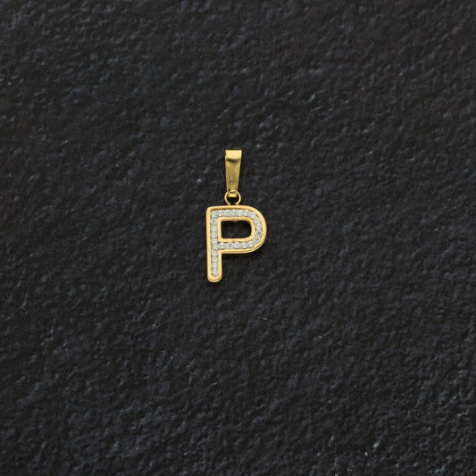 Gold P Shaped Alphabet Letter Pendant 18KT - FKJPND18K9420