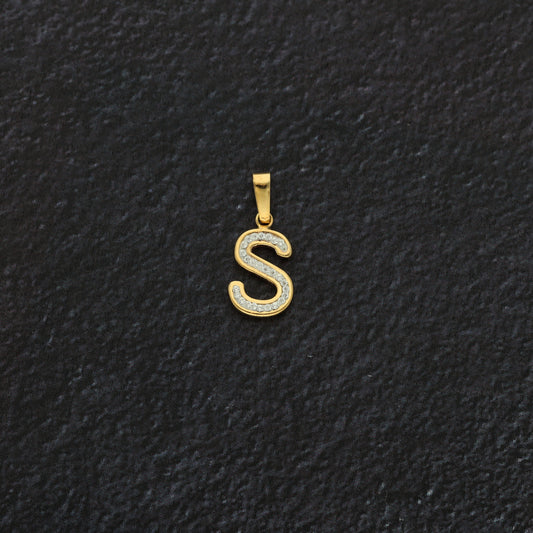 Gold S Shaped Alphabet Letter Pendant 18KT - FKJPND18K9422