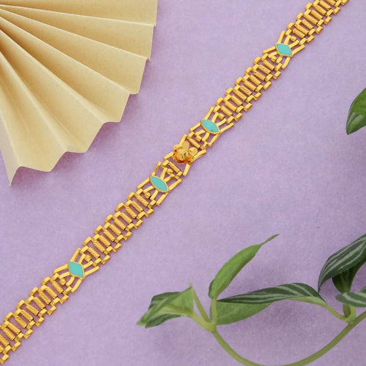 Classy Gold and Turquoise Link Bracelet 21KT - FKJBRL21KM8146
