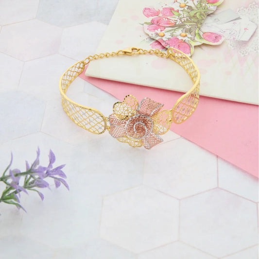 Gold Two Tone Flower Shaped Bracelet 21KT - FKJBRL21KM8054