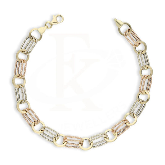 Tri Tone Gold Oval Cable Link Bracelet 18KT - FKJBRL18K5203