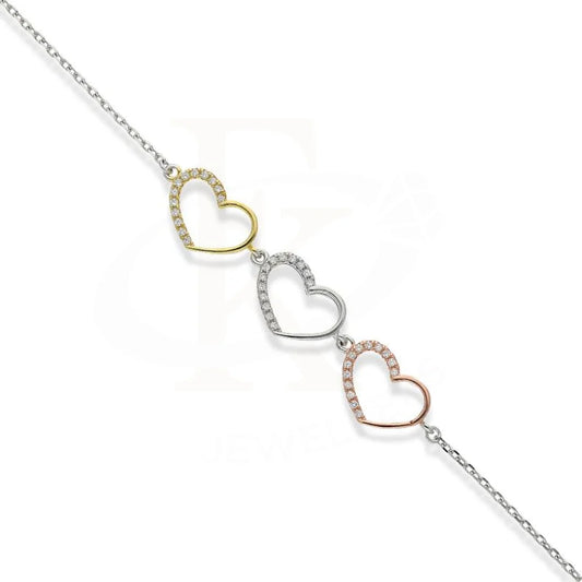 Sterling Silver 925 Tri-Tone Hearts Bracelet - FKJBRLSL2301