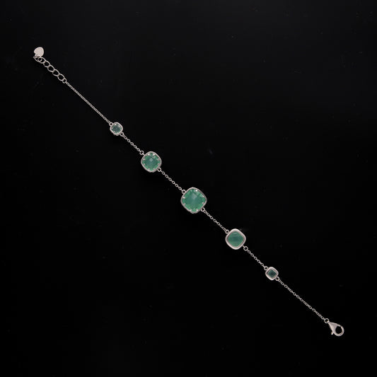 Sterling Silver 925 Elegant Green Stone Bracelet - FKJBRLSL10584